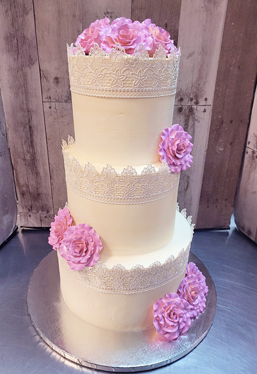 Have your cake delivered on time to your wedding venue, or have someone in your party pick it up from our bakery.